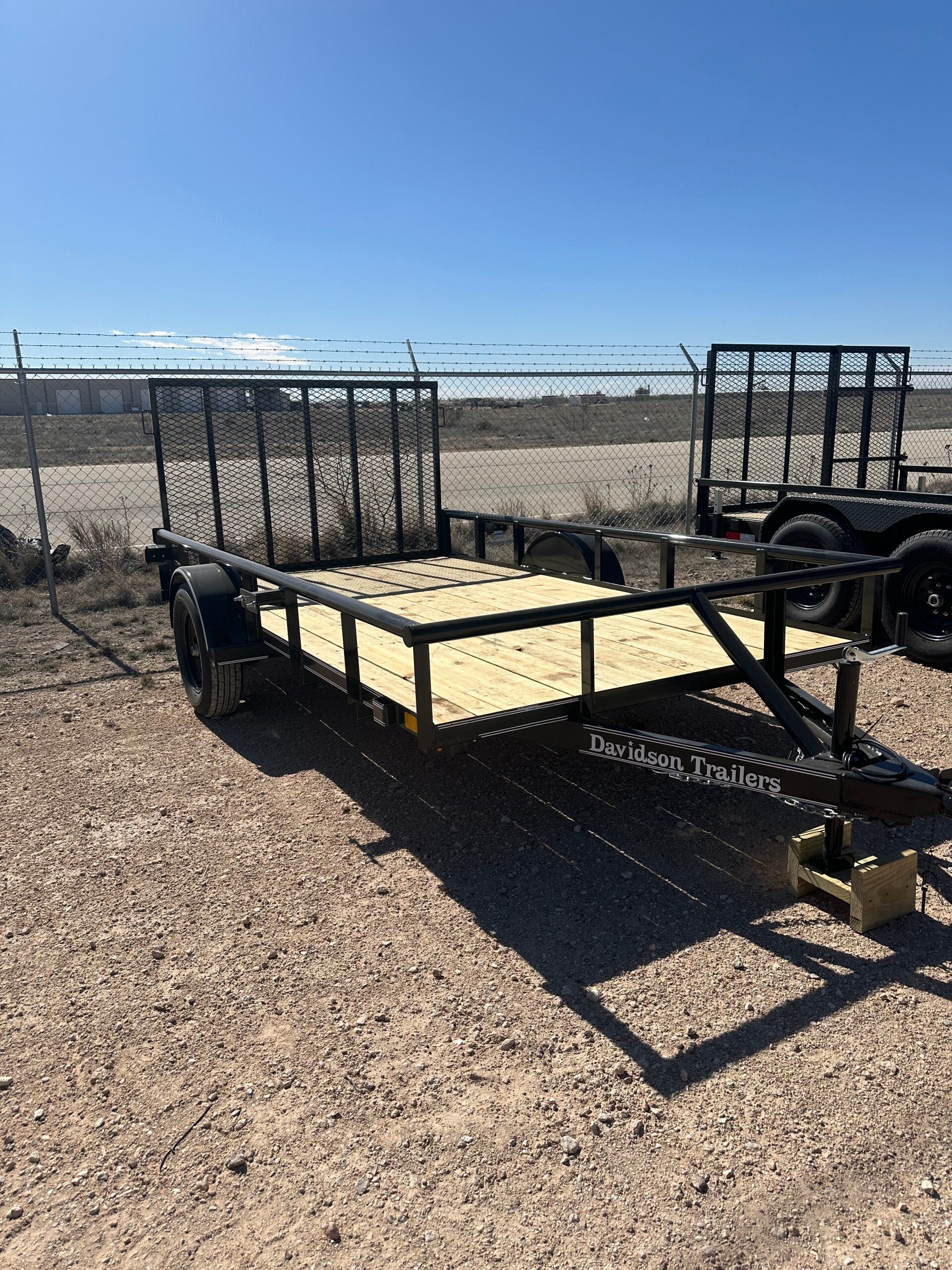 Brand new 2024 Davidson 77"x14' Single Axle Trailer. 3,500 lb axles/3,500 GVWR. Pipe top for additional strength. Treated wood floor. LED lights. 4' removable, reinforced gate or 4' ramp. 2" bulldog hitch.